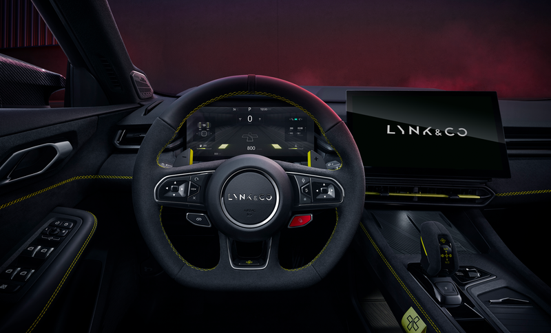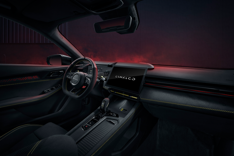 Gặp ốp gương làm từ sợi carbon, tay nắm cửa và nóc xe được sơn đen bóng, tất cả góp phần tạo nên diện mạo thể thao mạnh mẽ cho Lynk & Co 03+.